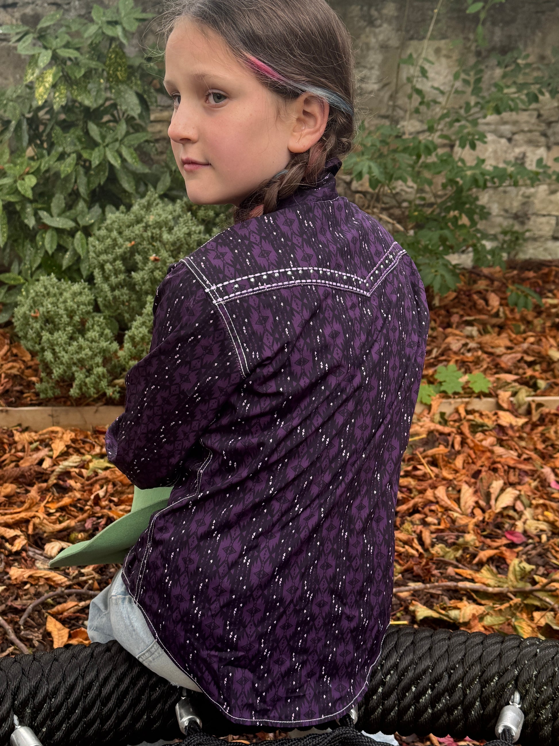 Kids Cowgirl Hardware Western Shirt - Long Sleeve- Purple Rodeo Rein